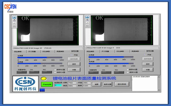 鋰電池極片檢測系統是利用C C D成像技術,獲取極片表面的圖像, 通過對圖像進行處理、檢測,判斷極片上是否存在露箔區域和其他缺陷區域,實現電池生產過程中的自動檢測,消除因露箔等缺陷所帶來的安全隱患。