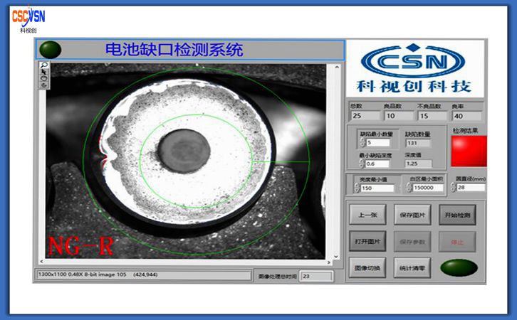 本系統(tǒng)用于檢測干電池正極口部變形檢測。干電池在生產(chǎn)中,不可避免的會(huì)出現(xiàn)擠壓、碰撞的情況,從而導(dǎo)致干電池正極的口部變形,進(jìn)而影響正極蓋片裝配不進(jìn)去,產(chǎn)出不良品。本系統(tǒng)在產(chǎn)線上連續(xù)運(yùn)行,動(dòng)態(tài)采圖,快速計(jì)算,及時(shí)排除不良品。